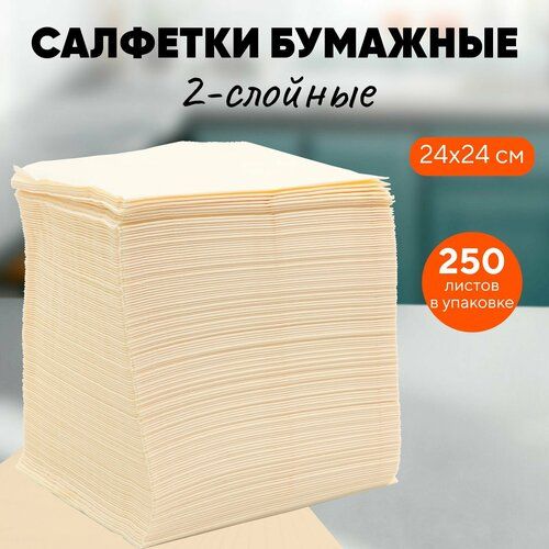 НАЙТИ ВЫГОДНЕЕ - Салфетки бумажные 24 х 24 см, двуслойные, шампань, 250 листов