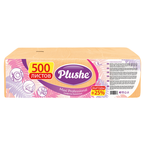 НАЙТИ ВЫГОДНЕЕ - Салфетки бумажные Maxi 24*24 Professional Plushe 500 штук в упак, персик