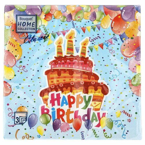НАЙТИ ВЫГОДНЕЕ - Салфетки ART BOUQUET Home Collection Classic, С днем Рождения, бумажные, 33х33 см,