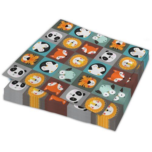 Праздничные бумажные салфетки «Хэппи Зоо» - стильное и практичное украшение для праздничного стола. Красочные трехслойные салфетки с изображением животных привлекут внимание гостей и поднимут настроение.