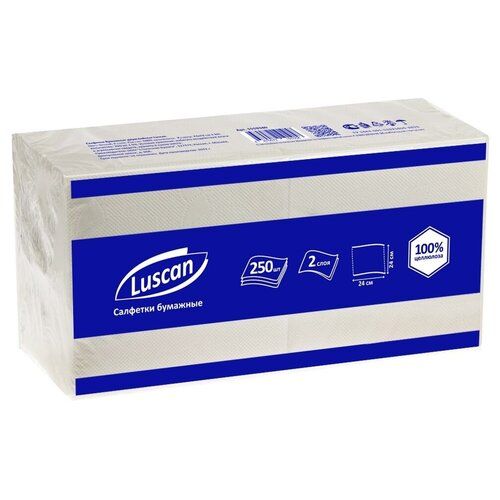 Салфетки бумажные Luscan 24x24 см белые 2-слойные 250 штук в упаковке Салфетки с тиснением предназначены для бытового повседневного применения или сервировки стола на торжественном мероприятии. Изготовлены из 100% целлюлозы, соответствуют нормам гигиены. Салфетки двухслойные, очень мягкие, эффективно впитывают пролитые жидкости, жир и др. Поставляются в упаковке по 250 штук. Размеры салфетки: 24х24 см. Законодательные и технические документы