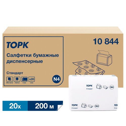 НАЙТИ ВЫГОДНЕЕ - Бумажные салфетки ТОРК (TORK) Xpressnap Universal диспенсерные, система N4, 2-слойные, 20 пачек по 200 листов 23х16 см, 10844
