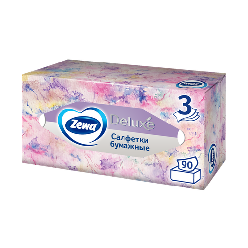 НАЙТИ ВЫГОДНЕЕ - Салфетки Бумажные в коробке Zewa Deluxe Design, 3 слоя, 90 шт.
