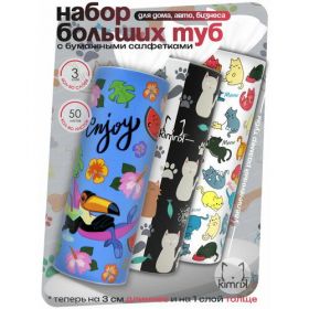 НАЙТИ ВЫГОДНЕЕ - Салфетки бумажные косметические в тубе, для автомобиля, для колясок, 3 слоя, 50 шт х 3 тубы, KIMRIK