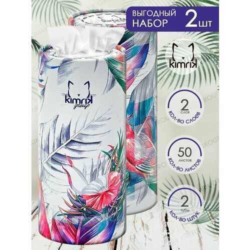 НАЙТИ ВЫГОДНЕЕ - Бумажные салфетки в тубусе птица, 2 слоя, 50 шт х 2 тубы