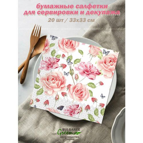 НАЙТИ ВЫГОДНЕЕ - Салфетки бумажные для декупажа для стола Цветущий сад 33х33 см 20 шт