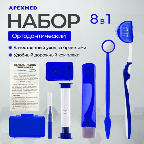 НАЙТИ ВЫГОДНЕЕ - APEXMED Ортодонтический набор для брекетов, дорожный, гигиенический 8 в 1, синий