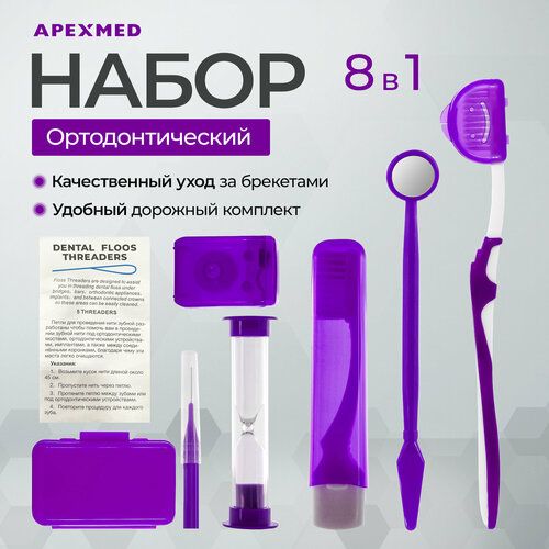 НАЙТИ ВЫГОДНЕЕ - APEXMED Ортодонтический набор для брекетов, дорожный, гигиенический 8 в 1, фиолетовый
