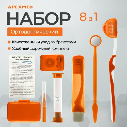 НАЙТИ ВЫГОДНЕЕ - APEXMED Ортодонтический набор для брекетов, дорожный, гигиенический 8 в 1, оранжевый