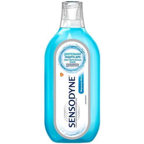 Sensodyne - бренд №1 по рекомендации* стоматологов для чувствительных зубов. Ополаскиватель для полости рта Sensodyne Морозная Мята подходит для людей с повышенной чувствительностью зубов, он также содержит фторид натрия и при регулярном использовании укрепляет зубы и предупреждает возникновение кариеса. Имеет приятный мятный вкус и освежает дыхание. Не содержит спирта и не сушит слизистую полости рта.