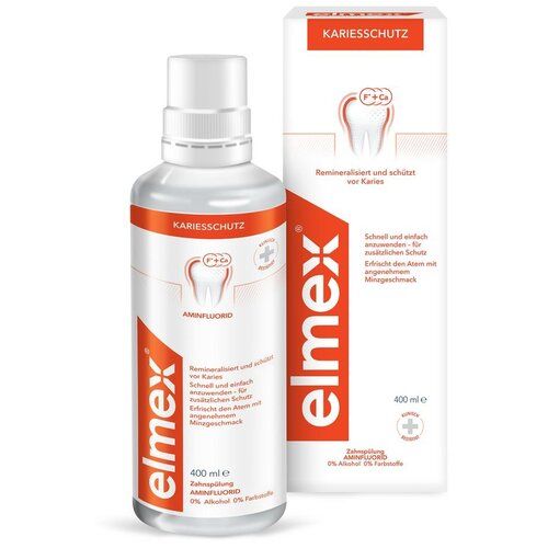 Высокоэффективный аминофторид, входящий в состав ополаскивателя, защищает зубы от кариеса, замедляет рост бактерий, образующих зубной налет. Ополаскиватель Colgate элмекс защита от кариеса способствует укреплению зубной эмали, снижает ее растворимость и стимулирует процессы реминерализации.