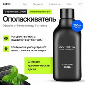 Отбеливающий ополаскиватель для полости рта от бренда EMRA с антибактериальным и укрепляющим эффектом поможет вернуть белизну зубов, укрепить десны и снизить риск развития кариеса.