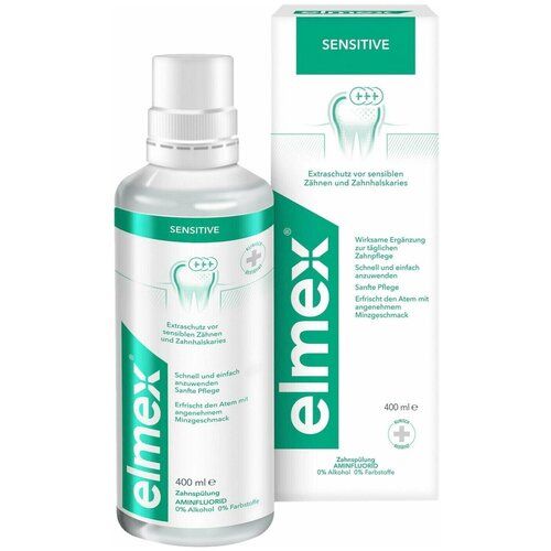 Elmex ополаскиватель для полости рта для чувствительных зубов и десен. Если Вы страдаете от повышенной чувствительности зубов и десен, то знаете, какие болезненные ощущения возникают при ежедневной гигиене полости рта. Но не отчаивайтесь, ведь ополаскиватель Элмекс Сенситив - это специально разработанный продукт, который поможет Вам справиться с этой проблемой. Ополаскиватель для рта детский с 6 лет.