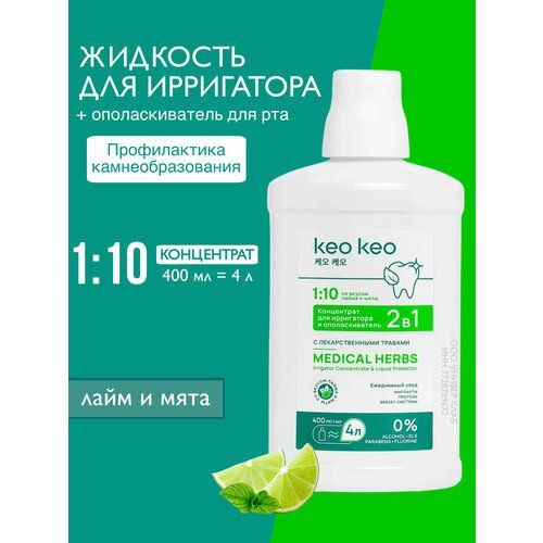 Ополаскиватель KEO KEО "Лайм и мята" - это антибактериальный концентрат, разработанный специально для ухода за полостью рта. Он предназначен для ополаскивания полости рта и гигиены зубов, а также может использоваться как раствор для ирригатора.