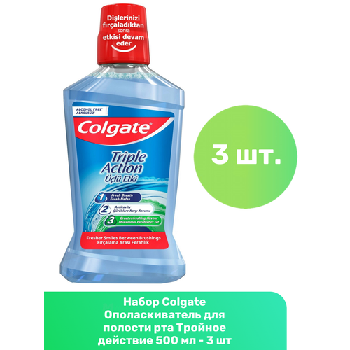 НАЙТИ ВЫГОДНЕЕ - Colgate Ополаскиватель для полости рта Тройное действие 500 мл - 3 шт
