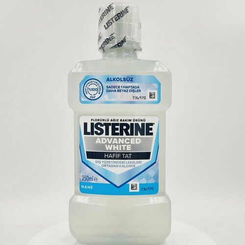 - Белые зубы всего за 1 неделю. Клинически доказано, что жидкость для полоскания рта LISTERINE Advanced White Milder Taste удаляет пятна и предотвращает образование новых. Неабразивный метод отбеливания не повреждает эмаль. Уникальный состав также содержит эфирные масла, уменьшающие зубной налет и освежающие дыхание. Фтор укрепляет зубную эмаль и предотвращает кариес. LISTERINE Advanced White Milder Taste не содержит спирта и имеет мягкий вкус. Используйте два раза в день после чистки.