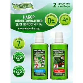 Ополаскиватель с экстрактами ромашки и берёзовых почек на сборе трав рекомендован для профилактики заболеваний пародонта. Замедляет скорость образования зубного налета, защищает от кариеса, придает длительную свежесть дыханию. Ополаскиватель с экстрактами коры дуба и пихты на сборе трав рекомендован для профилактики кровоточивости и воспаления десен, снижает скорость образования зубного налета, защищает от кариеса, придает длительную свежесть дыханию. В набор входят: Лаборатория природы Ополаскиватель цветки ромашки и березовые почки на сборах трав 275 мл, Лаборатория природы Ополаскиватель с экстрактами коры дуба и пихты 275 мл.
