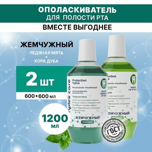 НАЙТИ ВЫГОДНЕЕ - Ополаскиватель для полости рта Жемчужный Кора дуба и Ледяная мята 2 штуки по 600 мл