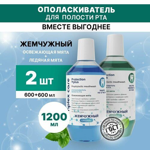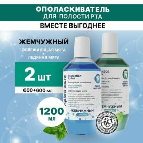 НАЙТИ ВЫГОДНЕЕ - Ополаскиватель для полости рта Жемчужный Освежающая мята и Ледяная мята 2 штуки по 600 мл