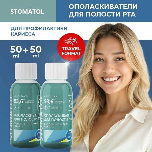 НАЙТИ ВЫГОДНЕЕ - Ополаскиватель для полости рта STOMATOL Calcium укрепление и реминерализация эмали, восстановление эмали, защита от кариеса 2 штуки по 50 мл