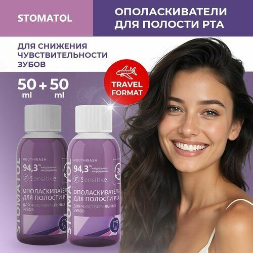 НАЙТИ ВЫГОДНЕЕ - Ополаскиватель для полости рта STOMATOL Sensitive для чувствительных зубов, защита от кариеса, укрепление эмали 2 штуки по 50 мл