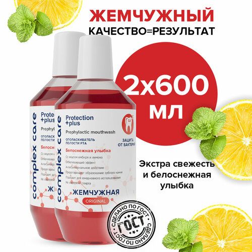 Набор ополаскивателей, 2 штуки по 600 мл. Ополаскиватель Жемчужный «Белоснежная улыбка» - это ваш новый секрет к белоснежной улыбке в этом году. Ополаскиватель для полости рта не содержит спирта. Входящий в состав экстракт и эфирное масло имбиря освежают дыхание, оказывают противовоспалительное, антибактериальное и антиоксидантное действие. Экстракт лимона обладает лёгким отбеливающим действием, поддерживая естественный цвет зубной эмали. В комплексе с зубной пастой «Жемчужная» повышает устойчивость слизистой оболочки полости рта к источникам инфекции, которые могут стать причиной возникновения пародонтоза. Натуральная косметика для полости рта поражает своей универсальностью и эффективностью. Средство представляет собой жидкий освежитель для ежедневного ухода за зубами и гигиены полости рта. Оно предназначено не только для поддержания свежести дыхания, но и тщательной защиты от зубного налета и зубного камня. Ополаскиватель подходит для брекет-систем, брекетов, пластинок, имплантов, съемных протезов, элайнеров, мостов и коронок. Используйте полоскатель утром и вечером после того, как почистите зубы щеткой с зубной пастой и после еды в течение дня. Ощутите отбеливающий эффект без лишних усилий и временных затрат на посещение стоматологов. Если вам важно следить за здоровьем полости рта круглый год, этот продукт станет незаменимым спутником в уходе за зубами и деснами. Средство отличается приятным ароматом лимона и имбиря после каждого использования, обеспечивая долгую свежесть и приятое ощущение в течение всего дня. Ополаскиватель эффективно справляется с удалением налета даже в самых трудно доступных местах между зубами, там, где не достает зубная щетка. Он обеспечивает надежную защиту от кариозных бактерий благодаря своему уникальному составу на основе экстрактов полезных растений, что делает его настоящим помощником в борьбе с микробами.