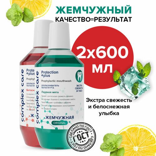 НАЙТИ ВЫГОДНЕЕ - Ополаскиватель для полости рта Жемчужная Белоснежная улыбка + Ледяная мята 2 штуки по 600 мл