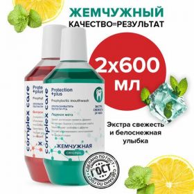 Набор ополаскивателей для полости рта "Жемчужный" Белоснежная улыбка и Ледяная мята в объеме 600 + 600 мл. Ополаскиватель Белоснежная улыбка не содержит спирта. Входящий в состав экстракт и эфирное масло имбиря освежают дыхание, оказывают противовоспалительное, антибактериальное и антиоксидантное действие. Экстракт лимона обладает лёгким отбеливающим действием, поддерживая естественный цвет зубной эмали. В комплексе с зубной пастой «Жемчужная» повышает устойчивость слизистой оболочки полости рта к источникам инфекции, которые могут стать причиной возникновения пародонтоза. Ополаскиватель для рта Ледяная мята укрепляет десны, освежает дыхание, оказывает противовоспалительное, заживляющее и противомикробное действие. Экстракт лимона обладает витаминизирующим и отбеливающим эффектами. В комплексе с зубной пастой повышает устойчивость слизистой оболочки полости рта к источникам инфекции, которые могут стать причиной заболевания пародонтозом. Ополаскиватель для рта против кровоточивости десен, против кариеса Жемчужный помогает решить проблему кровоточивости десен и усиливает иммунитет полости рта, снижая риск развития воспаления десен. С первого применения он улучшает состояние десен, снижает кровоточивость десен при регулярном использовании и снижает скорость образования налета. Рекомендован при ношении брекетов и съемных зубных протезов. Не содержит спирта. Укрепляет десны, освежает дыхание, оказывает противовоспалительное, заживляющее и противомикробное действие. Способ применения: Перед применением взболтать. Наполнить колпачок ополаскивателем для полости рта. Не разбавлять. Полоскать в течение 1-2 минут. Рекомендуется использовать ежедневно после чистки зубов или приёма пищи. Рекомендованы при ношении брекетов и съемных зубных протезов. Не содержат спирта.