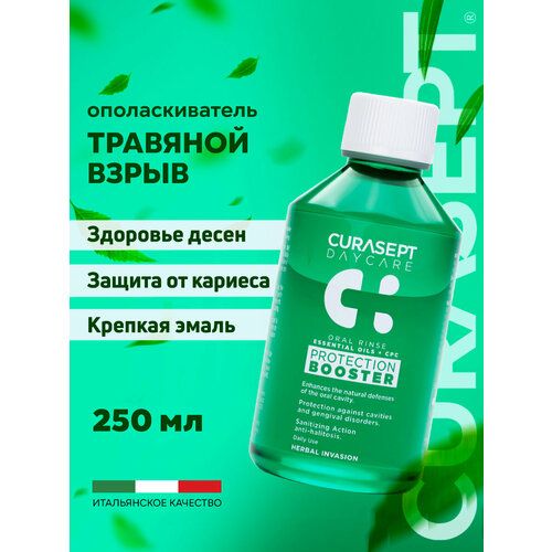 НАЙТИ ВЫГОДНЕЕ - Ополаскиватель для рта CURASEPT DAYCARE BOOSTER Herbal Invasion вкус Травяной Взрыв, Курасепт, 250 мл, Италия
