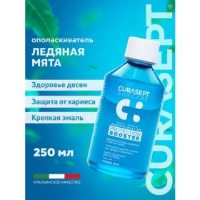 НАЙТИ ВЫГОДНЕЕ - Ополаскиватель для рта CURASEPT DAYCARE BOOSTER Frozen Mint со вкусом Ледяной Мяты, Курасепт, 250 мл, Италия