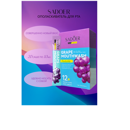 НАЙТИ ВЫГОДНЕЕ - Ополаскиватель для полости рта SADOER со вкусом винограда (20шт по 10мл)