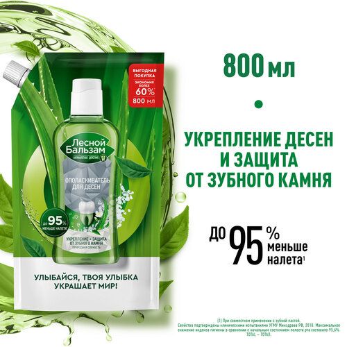 Ополаскиватель для рта Лесной Бальзам Природная Свежесть с морской солью, соком алоэ и экстрактом белого чая 800 мл