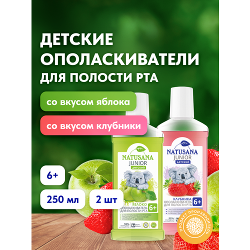 НАЙТИ ВЫГОДНЕЕ - Детский ополаскиватель NATUSANA Junior 6+ со вкусом яблока и NATUSANA Junior 6+ со вкусом клубники, 2 по 250 мл