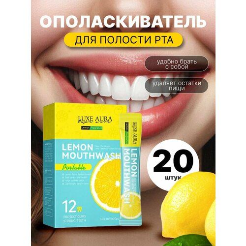 НАЙТИ ВЫГОДНЕЕ - Освежающий ополаскиватель для полости рта LUXE AURA, лимонный, в стиках по 10 мл, 20 штук