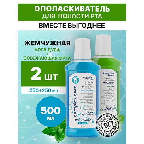 НАЙТИ ВЫГОДНЕЕ - Ополаскиватель для полости рта Жемчужная Кора дуба + Освежающая мята, 2 штуки по 250 мл