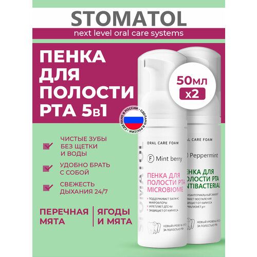 НАЙТИ ВЫГОДНЕЕ - STOMATOL Пенка для зубов очищающая, освежающая 2 штуки по 50 мл Антибактериальная + Нормализация микробиома