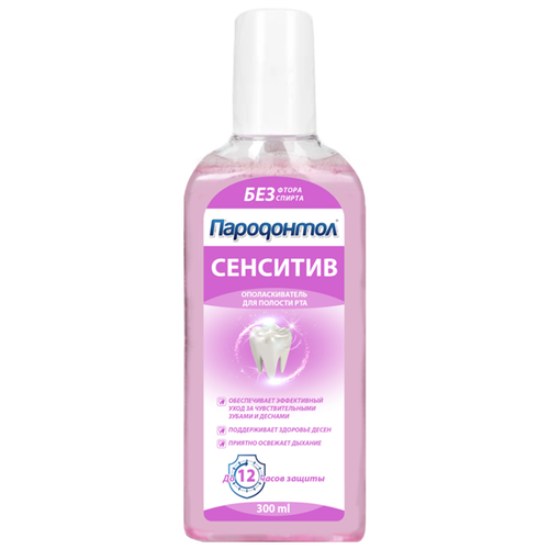 Ополаскиватель "Пародонтол" Sensetive cпециально разработан для ухода за чувствительными зубами и деснами в течение всего дня. Входящие в состав активные компоненты: способствуют укреплению зубной эмали, уменьшают чувствительность зубов и заботятся о здоровье десен. Не содержит: SLES, SLS, триклозан, хлоргексидин, сахар, искусственные красители Состав: Aqua, Sorbitol, PEG-40 Hydrogenated Castor Oil, Potassium Citrate, Allantoin, Polysorbate 20, Disodium Phosphate, Disodium EDTA, PVP, Imidazolidinyl urea, Sodium Methylparaben, Sodium Saccharin, Citric Acid, Aroma, Limonene, C.I. 17200.