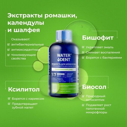 Жидкость для ирригатора Waterdent 2в1 Комплексный уход, 500 мл