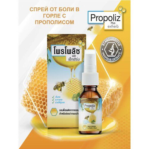 НАЙТИ ВЫГОДНЕЕ - Propoliz Plus Extherb Mouth Spray Тайский спрей от боли в горле с прополисом 15мл