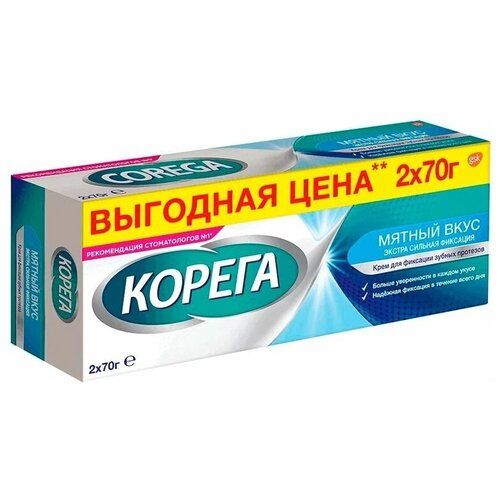 НАЙТИ ВЫГОДНЕЕ - Корега крем для зубных протезов Экстра-сильная фиксация, мятный вкус, 70 мл, 2уп.
