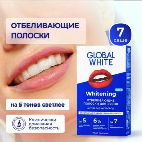 GLOBAL WHITE - это известный бренд, который зарекомендовал себя как надежный и эффективный производитель средств для ухода за зубами. Отбеливающие полоски GLOBAL WHITE "7 дней" не содержат сахара, глютена, хлоргексидина, хлорных отбеливателей, цинка, сульфатов, триклозана, фтора, парабенов, красителей, SLES и PEG. Они безопасны для использования и не вызывают аллергических реакций.
