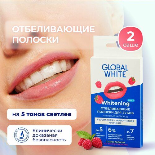 НАЙТИ ВЫГОДНЕЕ - Global White Global White отбеливающие полоски для зубов Малина 2 саше, 2 г, малина