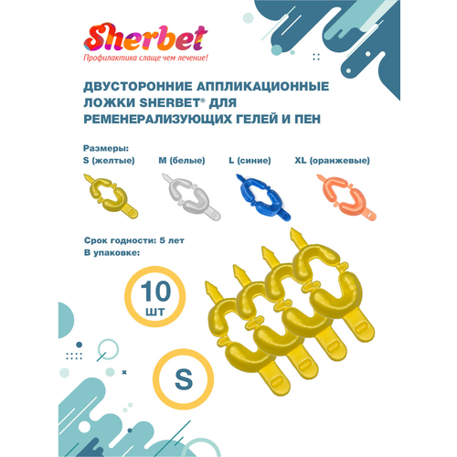 Двойные аппликационные капы Sherbet предназначены для аппликации реминерализирующих (фтор- и кальций-содержащих) гелей как в кресле стоматолога, так и в домашних условиях.