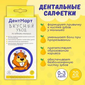 НАЙТИ ВЫГОДНЕЕ - Салфетки ДентМарт для полости рта с ксилитом (с 0 до 3 лет), 20 шт