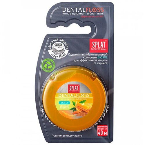 НАЙТИ ВЫГОДНЕЕ - Набор из 3 штук Зубная нить SPLAT 40м объемная апельсин-корица