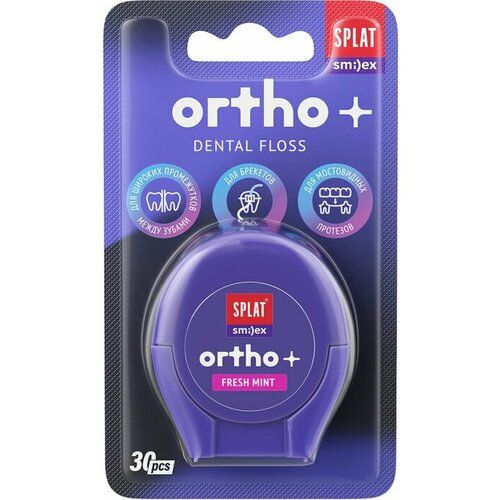 сплат зубная нить ортодонтическая объемная SMILEX ORTHO+ со вкусом мяты - объемная ортодонтическая зубная нить SPLAT® Smilex ORTHO+ со вкусом мяты очищает межзубные промежутки от налета и остатков пищи, а мягкая структура нити не травмирует десны.