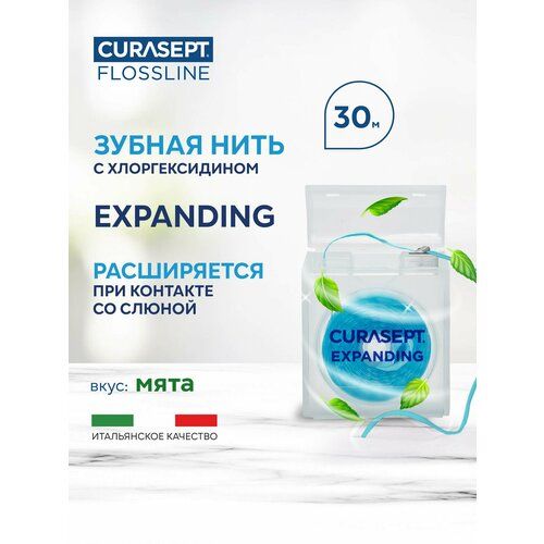 НАЙТИ ВЫГОДНЕЕ - Зубная нить невощеная CURASEPT Expending Расширяющаяся 30 м, Курасепт, Италия