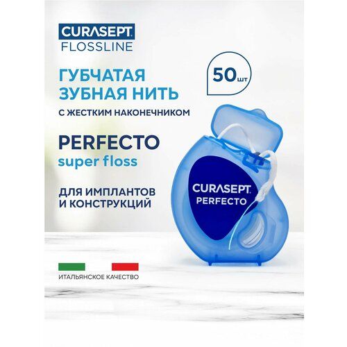 НАЙТИ ВЫГОДНЕЕ - Зубная нить губчатая CURASEPT Perfecto, в мотке 50шт, Курасепт, Италия