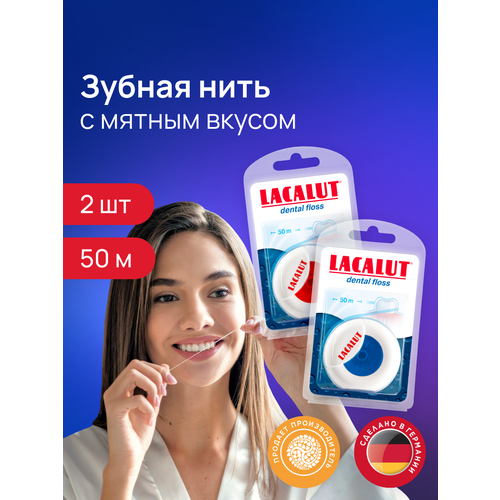 НАЙТИ ВЫГОДНЕЕ - Зубная нить Lacalut Dental с мятным вкусом, 50 метров спайка из 2 штук