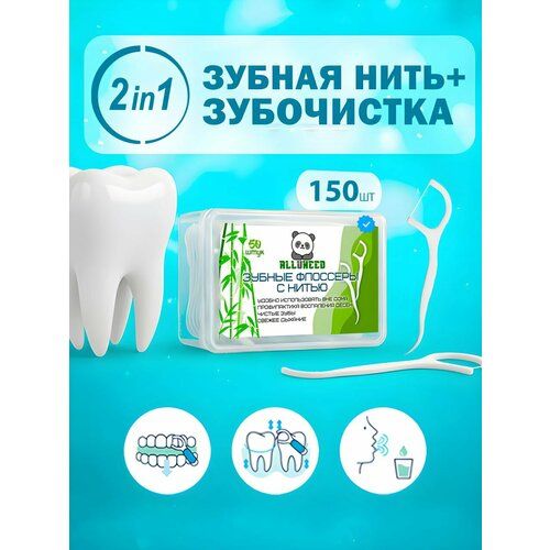 НАЙТИ ВЫГОДНЕЕ - Зубная нить с держателем, флоссер 150 шт. (ALLUNEEDis, профилактика кариеса и зубного налета), подходит для брекетов